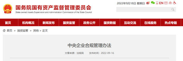 國務院國資委日前印發《中央企業合規管理辦法》(以下稱為《辦法》),推動中央企業加強合規管理,切實防控風險,有力保障深化改革與高質量發展。《辦法》自2022年10月1日起施行。