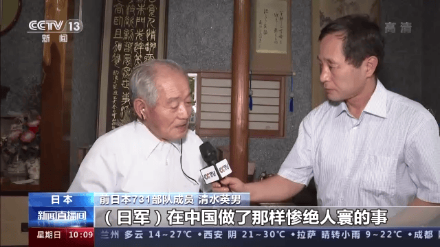 前日本731部隊成員清水英男:我要向中國人民道歉。(日軍)在中國做了那樣慘絕人寰的事,戰爭結束後,中國人民竟然還撫養日本人的孤兒,我打心底感謝中國人民。我覺得日本人應該懺悔罪行,同時必須向中國人民道歉。我堅決反對日本修改和平憲法,我們為什麼一定要戰爭呢,我們曾經對中國人民犯下慘無人道的罪行。