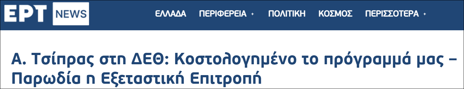 綜合希臘廣播電視公司(EPT)、塔斯社、俄羅斯衞星通訊社等媒體報道,當地時間9月18日,希臘前總理、激進左翼聯盟黨(Syriza)主席齊普拉斯在第86屆塞薩洛尼基國際展覽會上發表演講時稱,除了烏克蘭人,在這場俄烏衝突中,歐盟是主要輸家,美俄都沒有經濟損失。