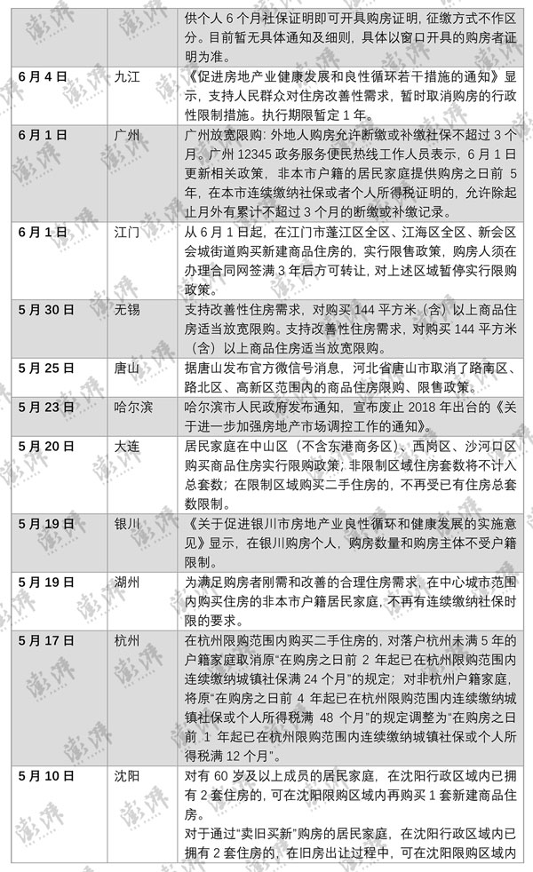 在這些城市中,有些宣佈廢止原先出台的限制性措施,有些宣佈縮小限購範圍,有些降低了限購門檻,有些城市則明確多孩家庭、親屬投靠可新增購房名額。