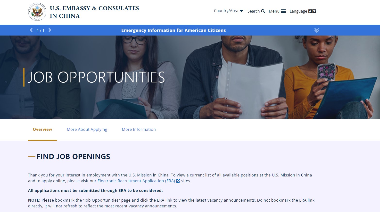 美國駐華大使館網頁上刊登的工作人員招募公告