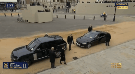 奧弗頓停頓了一下後説道:“我們剛剛被告知,剛剛從遠處看到的是莉茲·特拉斯,英國新首相,她從車上走了下來。”