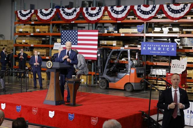 5月6日,拜登訪問位於“鐵鏽地帶”的俄亥俄州,參觀完漢密爾頓市一家鋼鐵企業後發表演講。圖自《斯普林菲爾德日報》