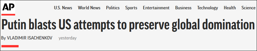 “我必須説,這個‘全球領導者’在相當長的一段時間內成功地做到了這一點。”普京未具體點名地指出,但無論俄烏衝突的事態如何發展下去,該國的霸權都不可能永遠持續下去。對此,美聯社認為,普京所説的“霸權國家”即是美國。