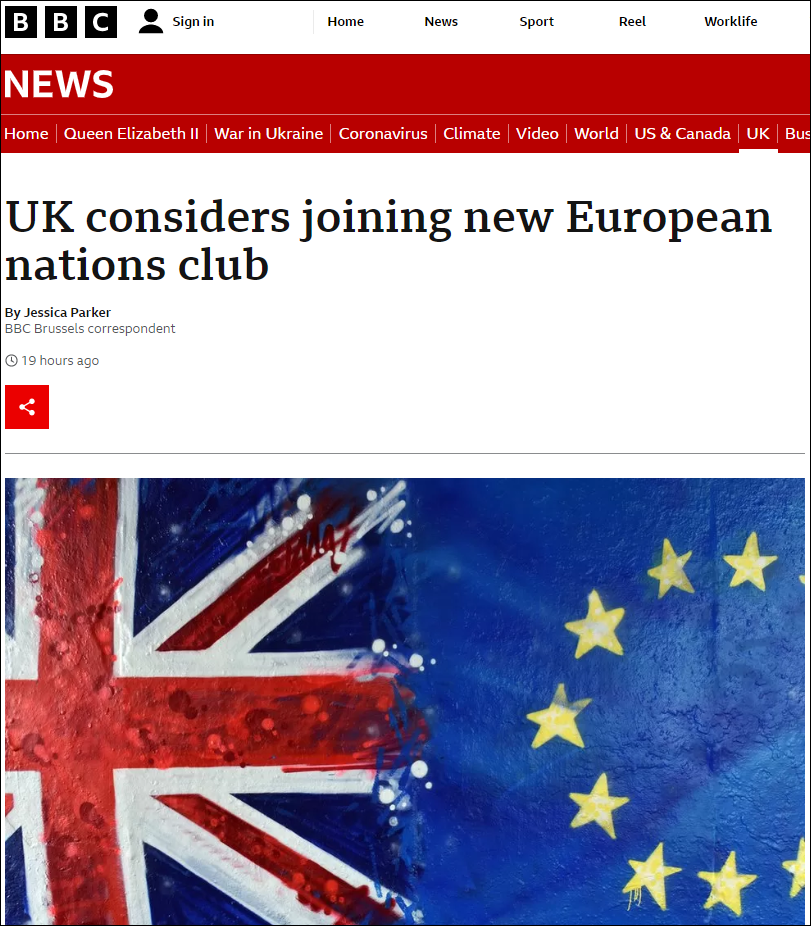 BBC報道稱,對於“歐洲政治共同體”,英國方面正考慮加入其中,但對於出席首次會議也顧慮頗多。據報道,英國政府官員正在尋求該組織首次會議不會過於被歐盟國家或機構主導的保證,同時希望看到歐盟以外的其他歐洲國家參會。