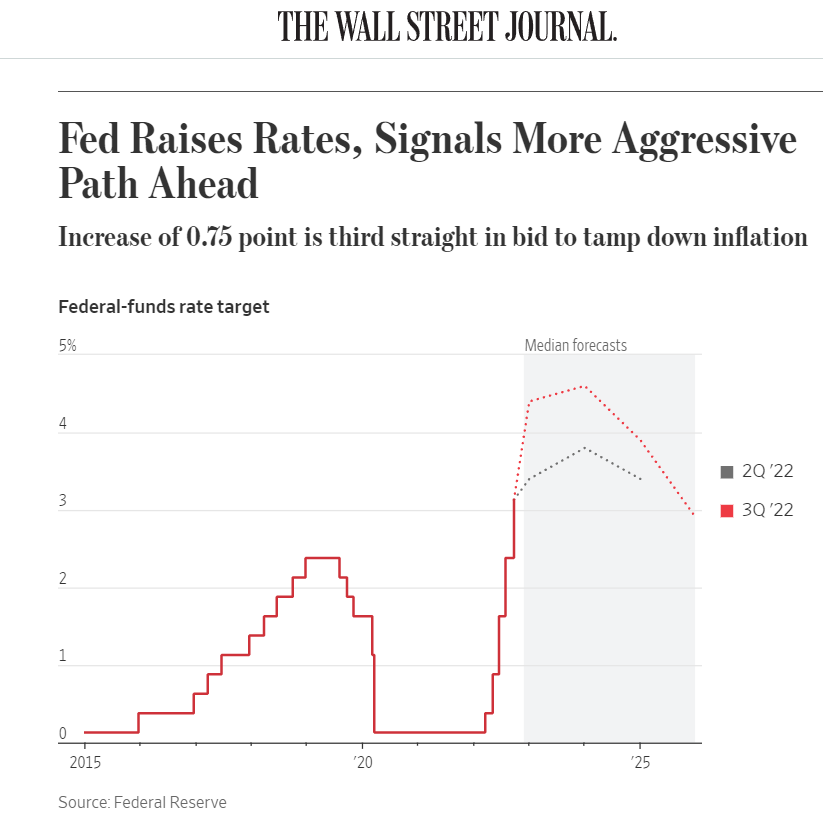 “美聯儲加息,預示未來將走更激進的道路” 《華爾街日報》報道截圖