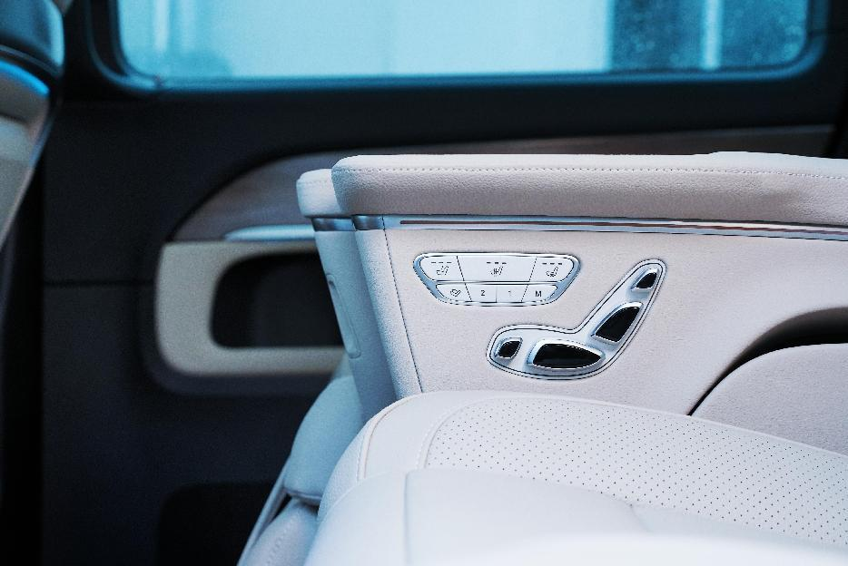 在開門的那一刻,搭載品牌標誌投影,以星徽光影點亮登車區域,升級豪華體驗。步入車內,淺棕色孔雀木紋飾件搭配DINAMICA車頂內襯、馬龍棕色ARTICO皮革(傳承於邁巴赫S級),將前衞與典雅完美結合,懸浮式液晶顯示屏則是科技感十足。