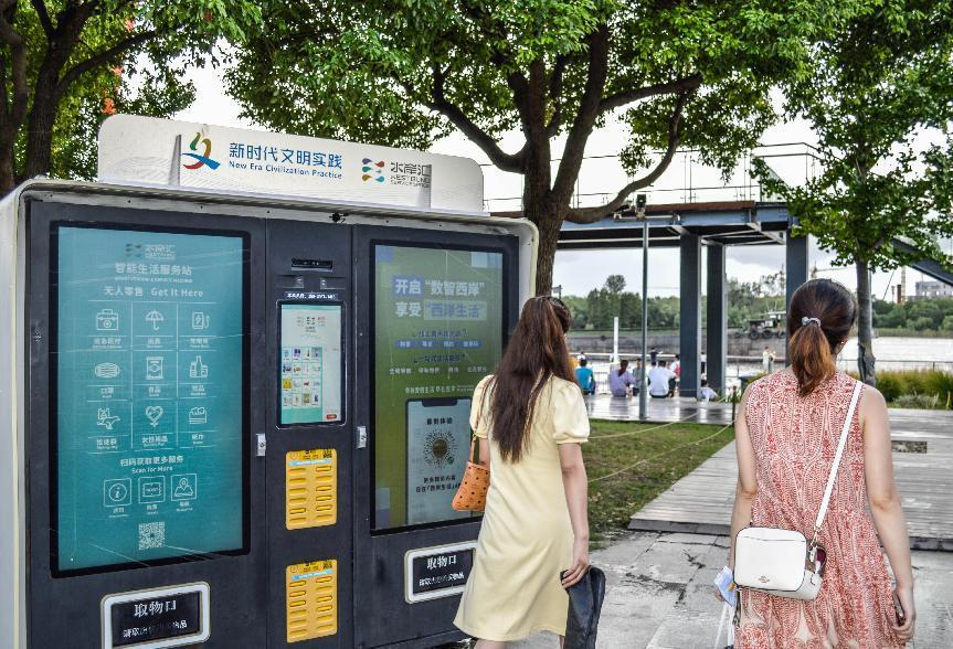 此外,“智能生活服務站”作為“水岸匯”便民服務一站式自助機,不僅為大眾提供飲品、雨具、共享充電寶、醫療急救包、寵物用品等沿江便民設施,還配有區域導航、展覽購票、活動查詢等功能。幾鍵觸屏下,遊客的所需所想均能得到快速回應。