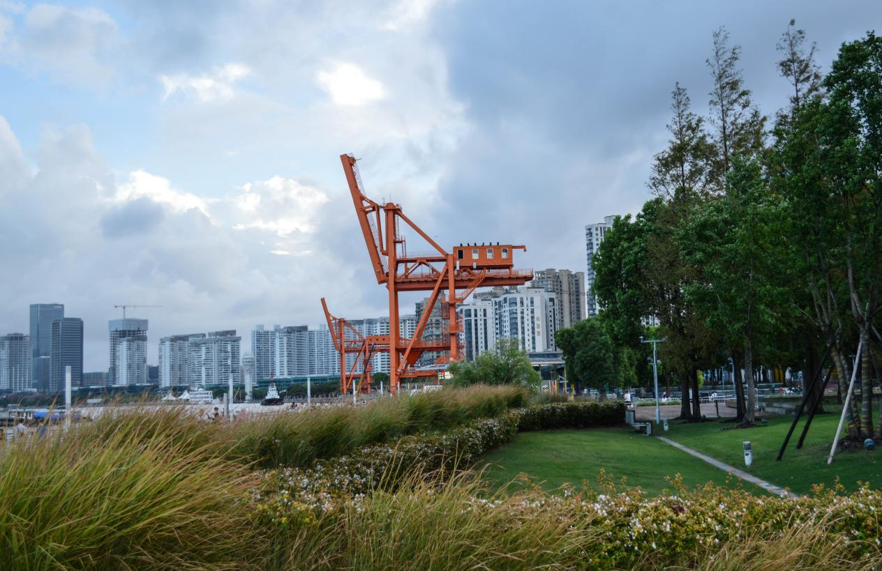 徐匯濱江有如此清晰而獨特的形象,我私自認為兩座醒目的橙紅色塔吊有一半功勞。在過去,它們曾是北票碼頭搬運煤炭的“大力士”,踏實可靠又威風凜凜。而如今,“退役”後的兩座塔吊更像是“安靜的美男子”,以鮮明的色調和挺拔的姿態矗立於江邊,任由“腳邊”的人們嬉戲於其間。