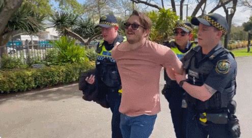 接着,這名男子被三名警察驅逐出了南澳州總督府。