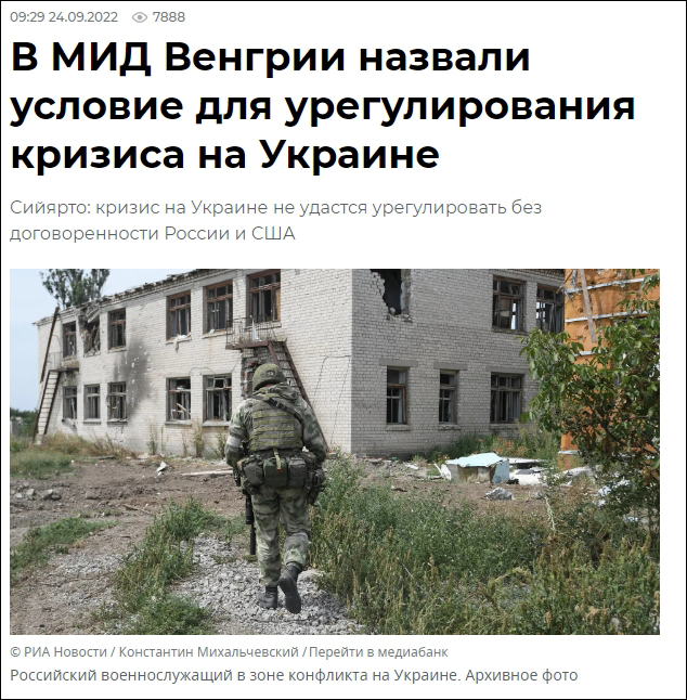 綜合俄媒24日報道,匈牙利外交部長西雅爾多表示,除非俄羅斯和美國達成協議,否則烏克蘭危機無法解決。他還稱,當前最重要的就是“建立和平”,如果俄烏有需要的話,匈牙利已準備好作為雙方和談的地點。