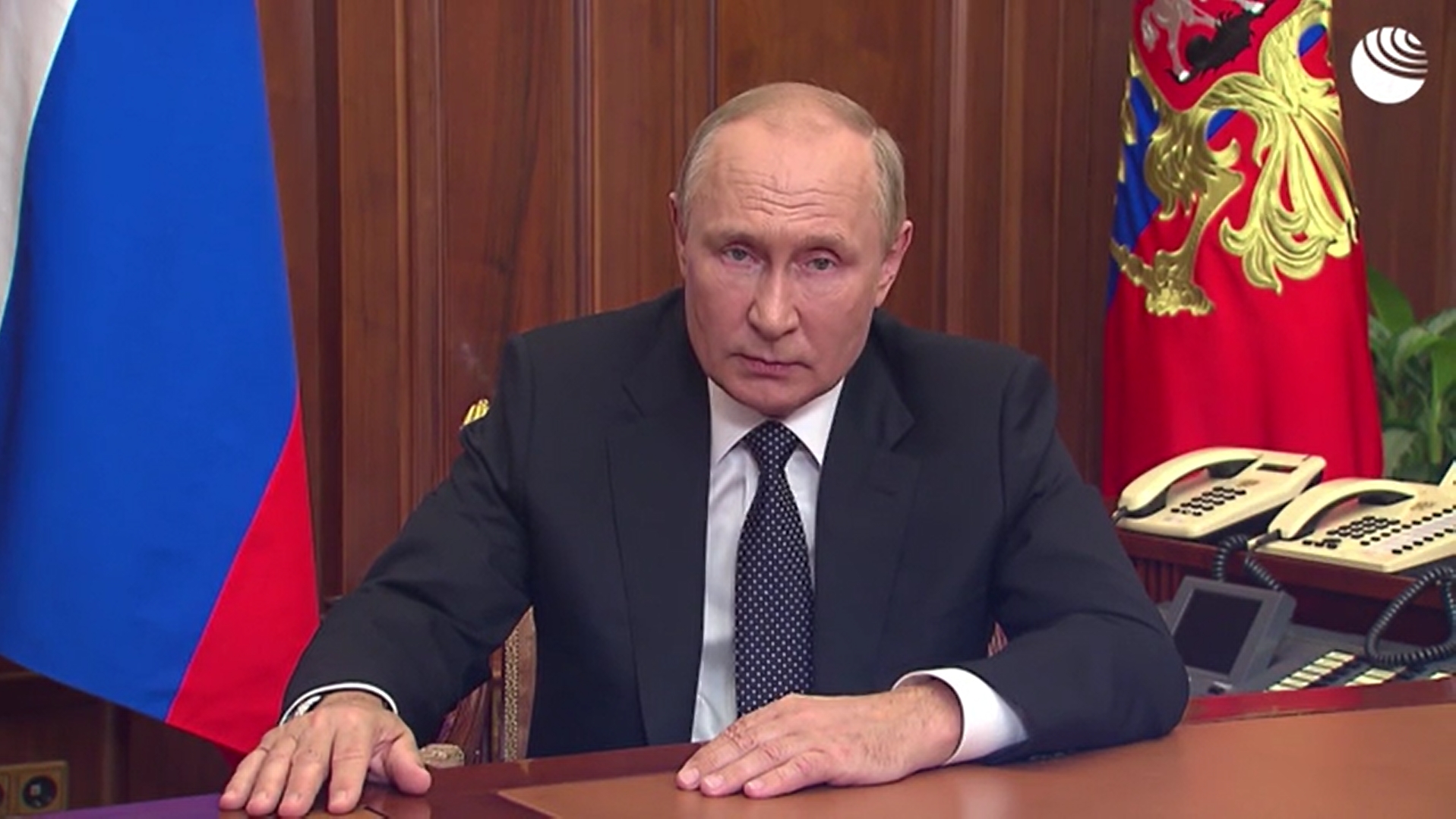 普京發表電視講話,宣佈局部軍事動員(視頻截圖)