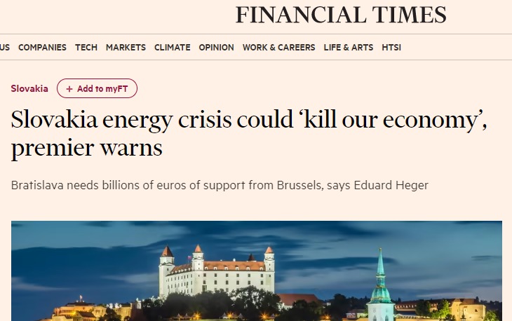 據英國《金融時報》9月28日報道,斯洛伐克總理黑格(Heger)受訪時表示,電力成本飆升已使該國經濟面臨“崩潰”的風險,除非歐盟能給予50億歐元的援助,不然他們只能國有化本國的電力供應體系。