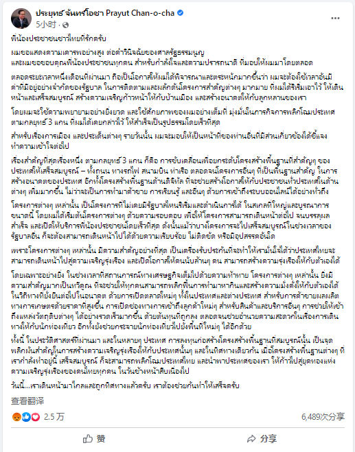 巴育臉書賬號截圖