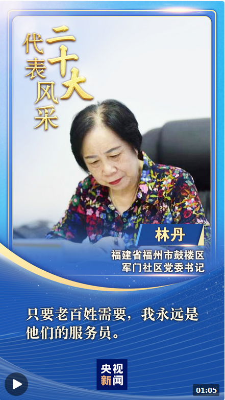 二十大代表風采 | 林丹:永遠當好百姓的服務員 2022-10-03 她是紮根基層50年的社區黨委書記,用一輩子做着一件事——用心用情做好社區工作,當好居民羣眾的“服務員”。 “二十大代表風采”一起來認識福建省福州市鼓樓區軍門社區黨委書記林丹。 點擊查看原視頻