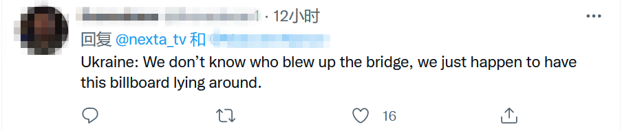 “烏克蘭:我們不知道是誰炸了這座橋,我們只是碰巧看到了這個廣告牌。”