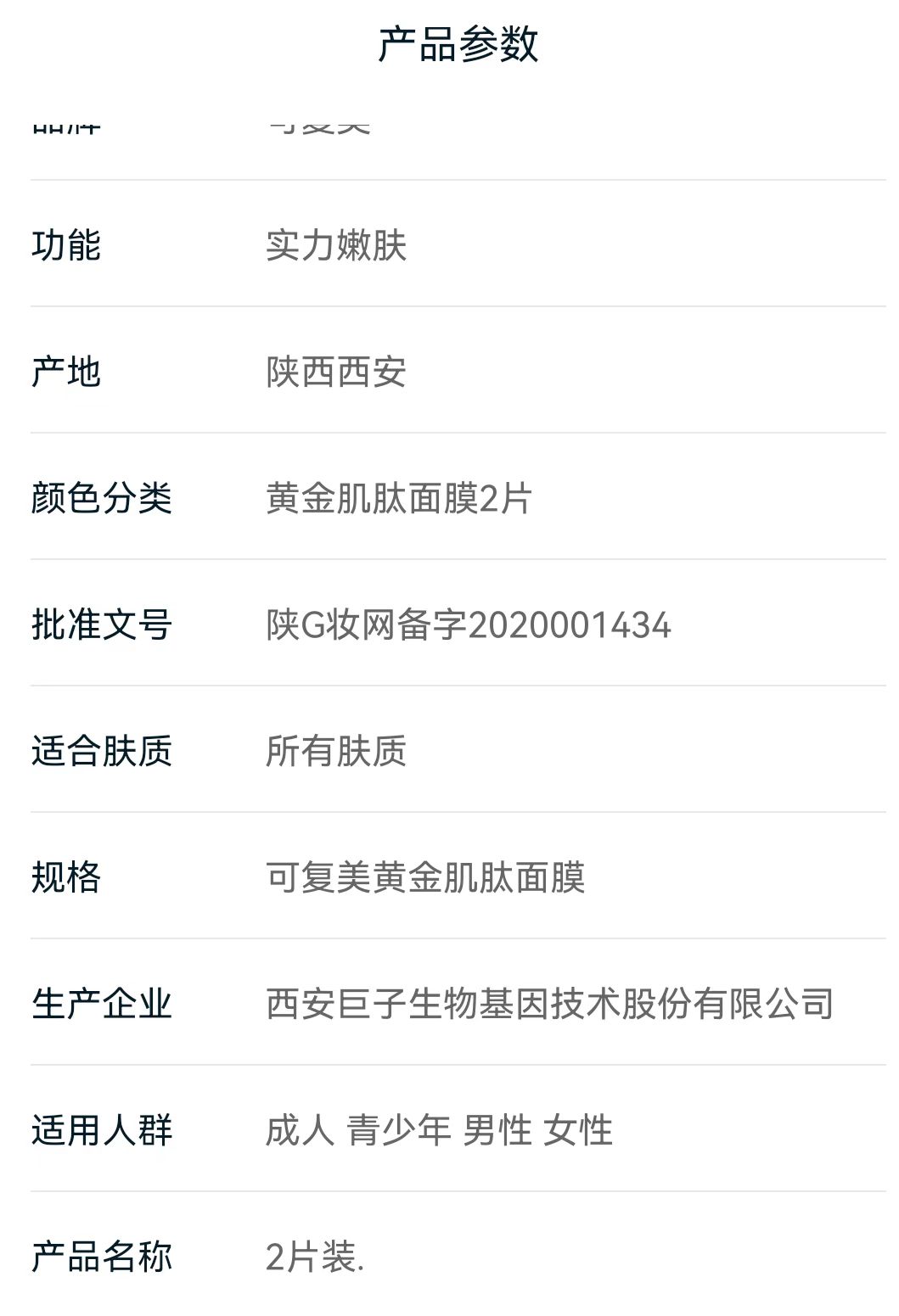 可復美官方旗艦店客服人員向觀察者網介紹,鉅子生物旗下“可復美”的“械字號”醫用敷料僅有4款,包括兩款面膜狀、一款乳液狀、一款噴霧狀,其他“小水膜”“小金膜”“擺脱痘痘印面膜”等都是普通的“妝字號”產品。