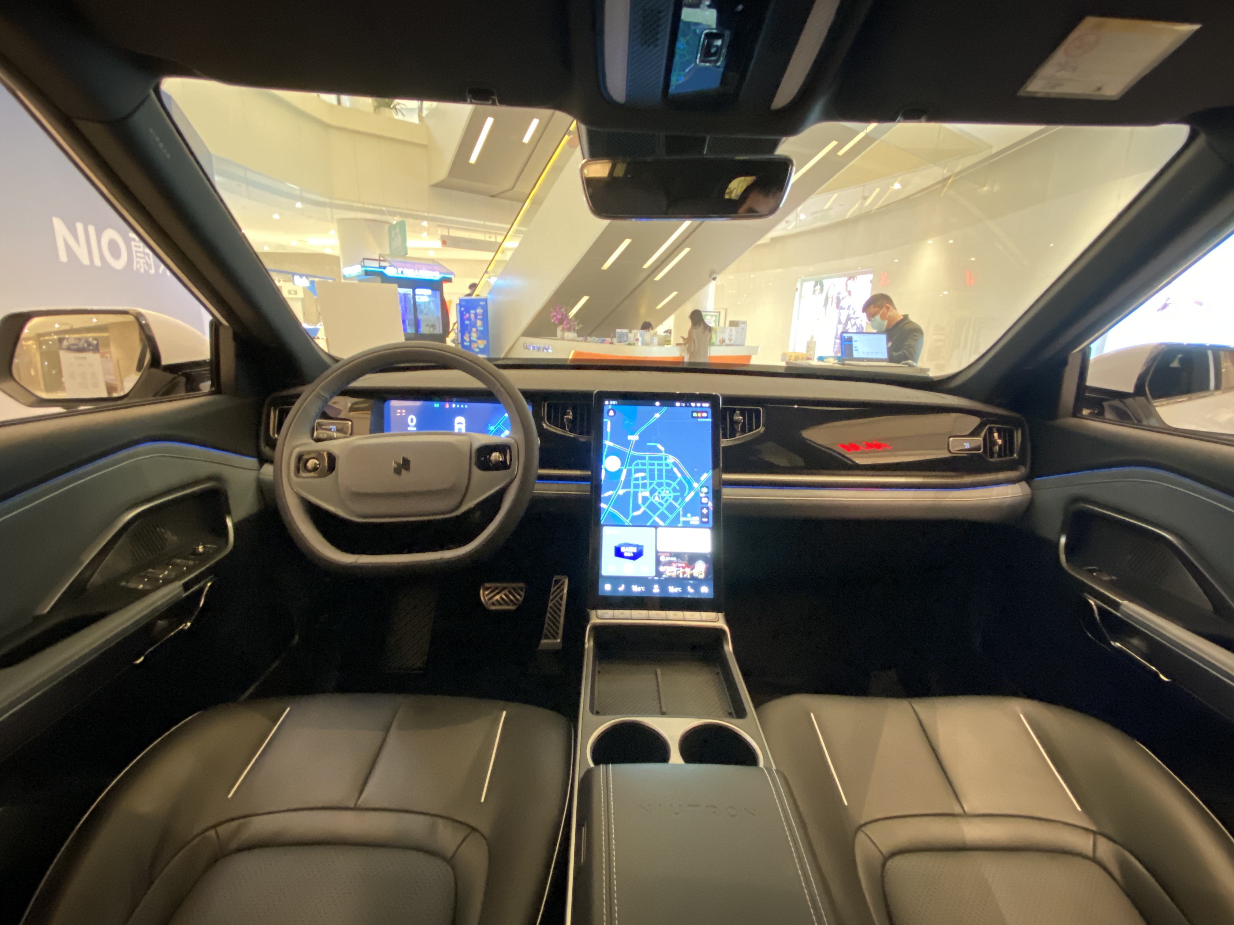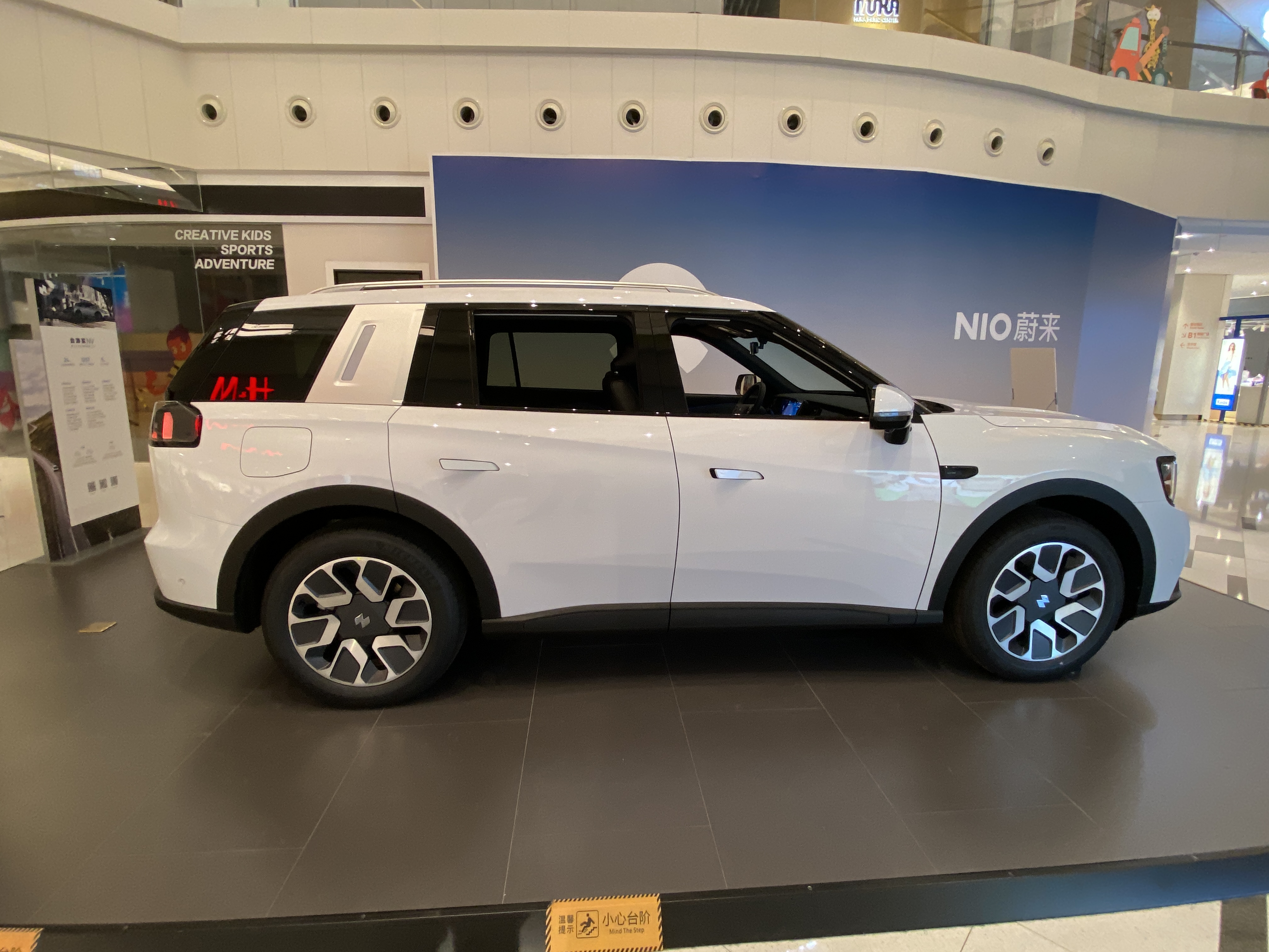 在新車上市後不久,觀察者網在位於上海一商城的外展台見到了自遊家NV的實車。這輛純電版的自遊家NV佈置於商城底層走道中央。