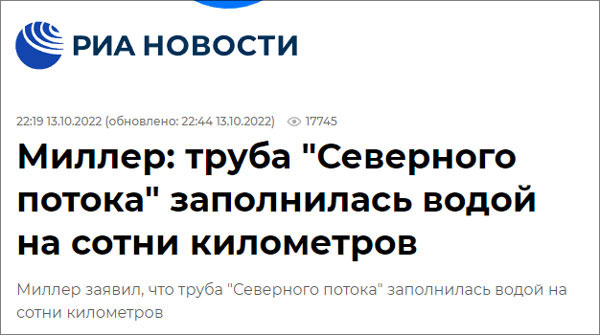 他表示,俄羅斯代表尚未獲準進入事故現場。同時,根據天然氣管道的壓降速度,可以説管道已經完全破裂。米勒強調,“這些是前所未有的緊急狀態,這些是前所未有的恐怖行為”,並表示到目前為止,沒有一個歐洲合作伙伴表示他們想要恢復受損的管道。