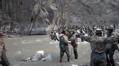 2020年6月,外軍公然違背與我方達成的共識,越線搭設帳篷。按照處理邊境事件的慣例和雙方之前達成的約定,團長祁發寶本着談判解決問題的誠意,僅帶幾名官兵,蹚過齊腰深的河水前出交涉。