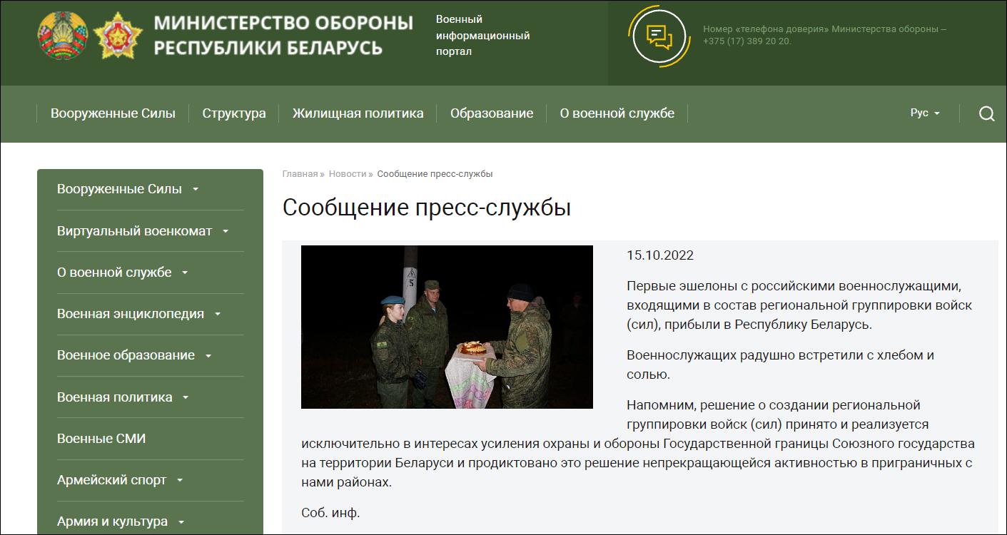(觀察者網 訊)白俄羅斯國防部網站消息,當地時間10月15日,首批與白俄羅斯軍隊組成新區域聯合部隊的俄羅斯士兵已抵達白俄羅斯。