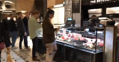 其中一段視頻顯示,在倫敦騎士橋的哈羅德百貨商店,幾名抗議者將牛奶從貨架上拿下來,倒在了肉類櫃枱及地面上。