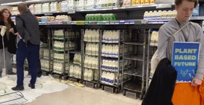 英國素食者又在多地商店內倒牛奶,英外交大臣:他們只想求關注,別報道
