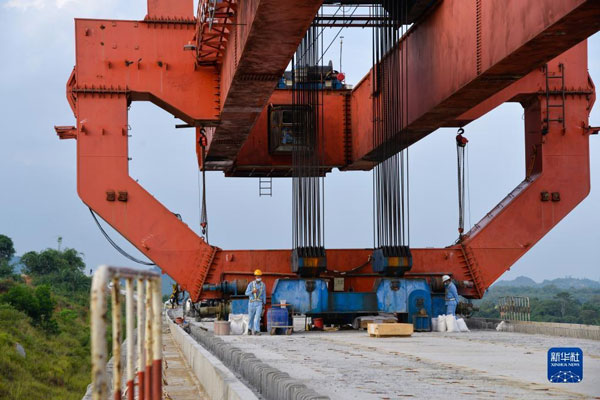 16日,隨着最後一榀重達900噸的簡支梁穩穩落在雅萬高鐵24號橋8號至9號橋墩上,印度尼西亞雅萬高鐵全線箱梁架設任務順利完成,鋪軌通道全面打通,為2023年6月建成通車奠定了堅實基礎。