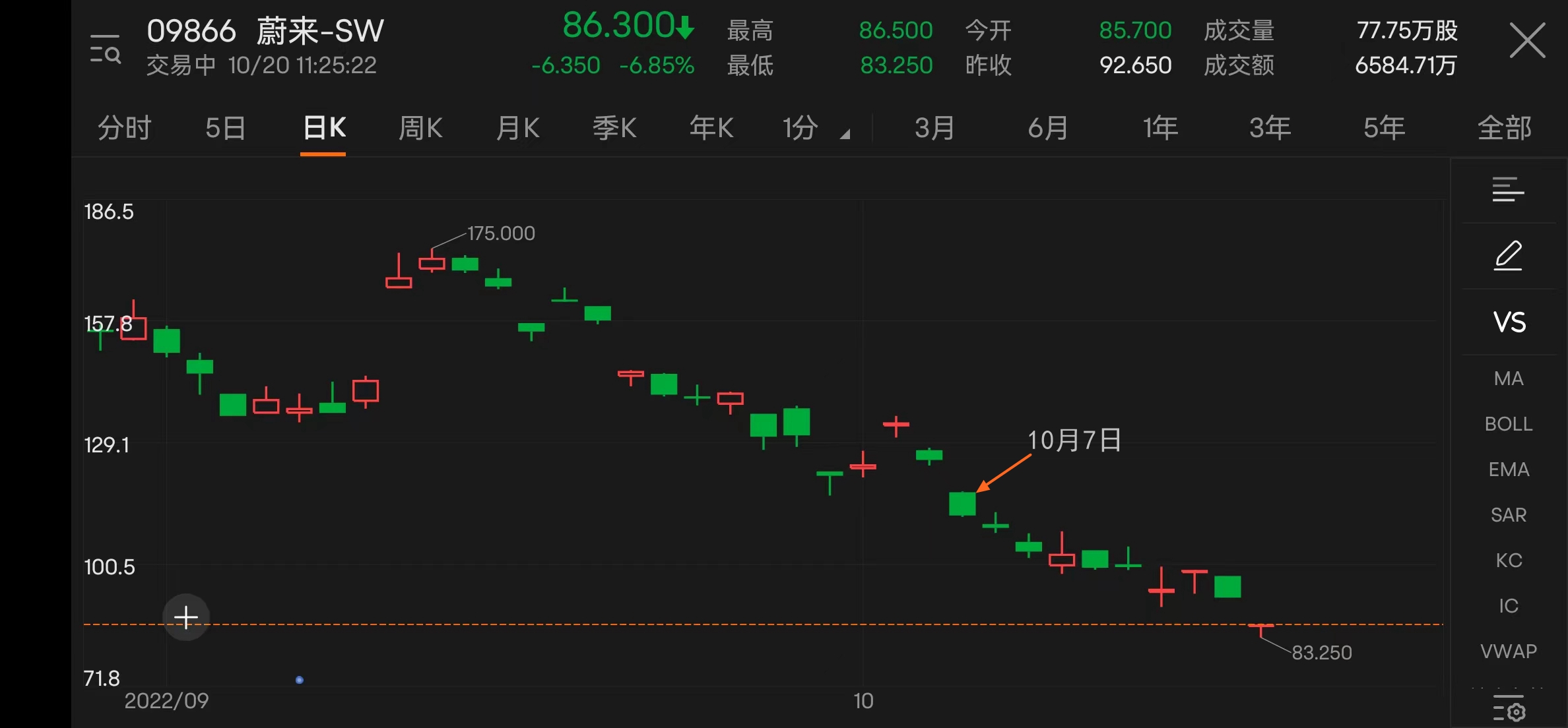 自歐洲發佈會以來蔚來股價走勢 圖片來源:富途牛牛