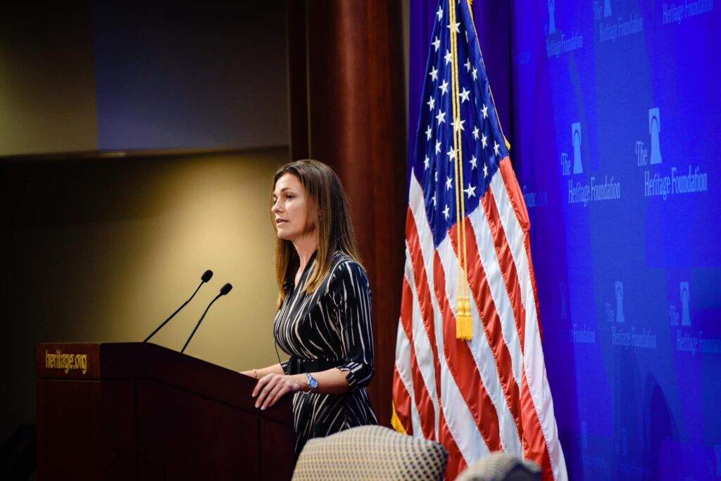 當地時間10月24日,匈牙利司法部長朱迪特·瓦爾加在美國傳統基金會發表演講 圖源:瓦爾加臉書