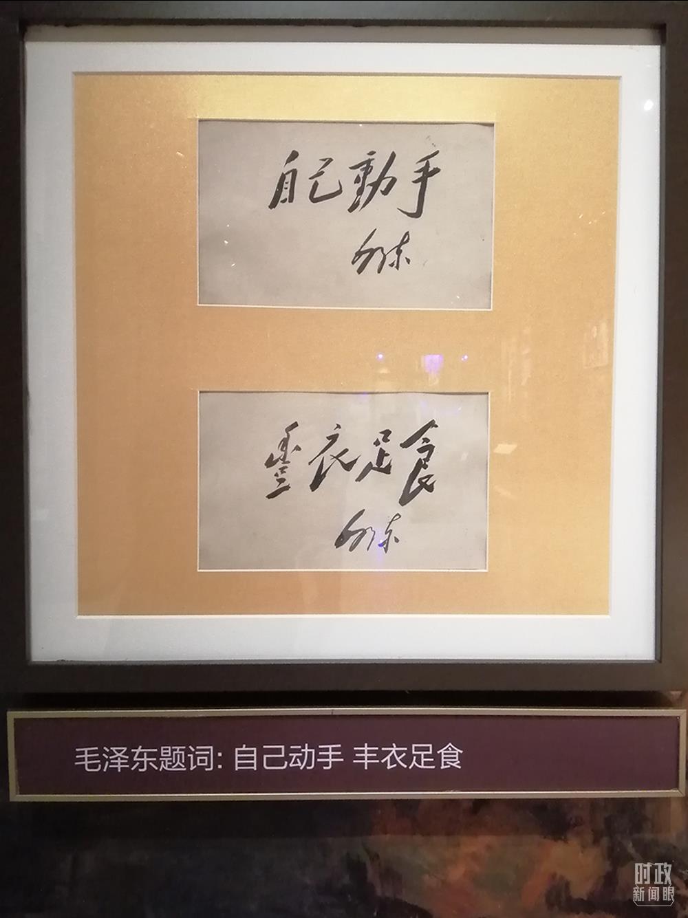 △毛澤東“自己動手 豐衣足食”的題詞。(總枱央視記者許永松拍攝)