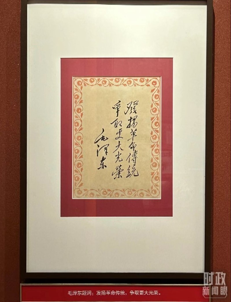△毛澤東題詞:發揚革命傳統,爭取更大光榮。(總枱央視記者範一鳴拍攝)