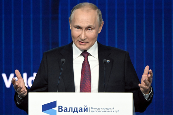 當地時間2022年10月27日,俄羅斯莫斯科,在第19屆瓦爾代論壇年度會議上,俄羅斯總統普京在演講 圖源:人民視覺