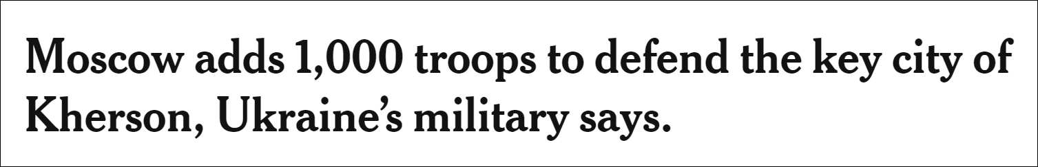 據《紐約時報》28日報道,烏克蘭武裝部隊總參謀部在一份聲明中表示,俄羅斯軍隊正用新動員部隊的士兵以增強其在赫爾松州右岸的勢力。