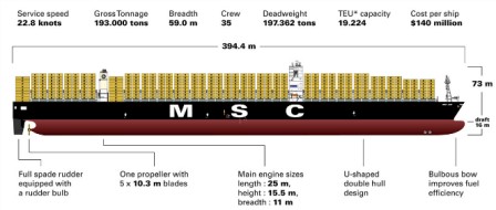 目前最大的集裝箱船舶可以裝運超過20000個二十尺標準集裝箱。由於船舶越大,單箱的運營成本越低,行駛在亞歐幹線上的集裝箱船舶多半是超過10000標準箱的大型船舶。雖然每次集裝箱船舶裝卸時不必將所有集裝箱都卸下,但卸下進口箱、裝上出口箱都是獨立的裝卸過程。有時為了將壓在下面的集裝箱卸下,還需要將上面的多個集裝箱先卸下臨時放到碼頭上再裝回船上。每條集裝箱船舶的裝卸都需要花費一定的時間。
