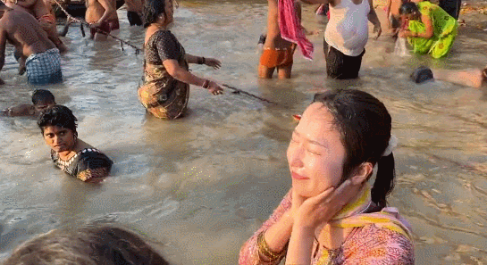 她在視頻和多條推文中也反覆強調,“我17歲時就去過恆河,(恆河的危險性我已經調查過了),當時我很後悔只走到河水漫過大腿的位置,但現在洗得乾乾淨淨,很幸福。但大家不要模仿。”