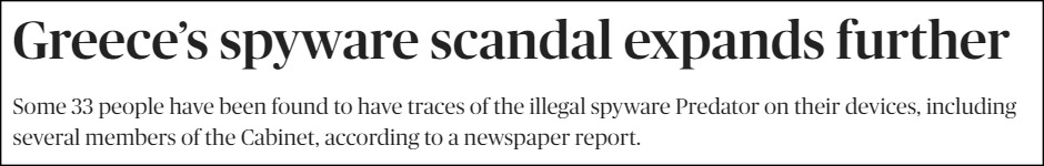 根據“Documento”的説法,監聽行為由希臘政府主導,名單涵蓋了希臘政府官員和主要反對派人士,包括財政部長、外交部長等多名內閣部長、前總理薩馬拉斯、反對黨泛希社運領導人尼科斯·安德魯拉基斯(Nikos Androulakis)以及記者薩納西斯·庫卡基斯(Thanasis Koukakis)等人。