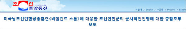 朝鮮人民軍總參謀部再次宣佈,將以持續、堅決而壓倒性的實際軍事措施應對敵人的種種反朝戰爭演習。