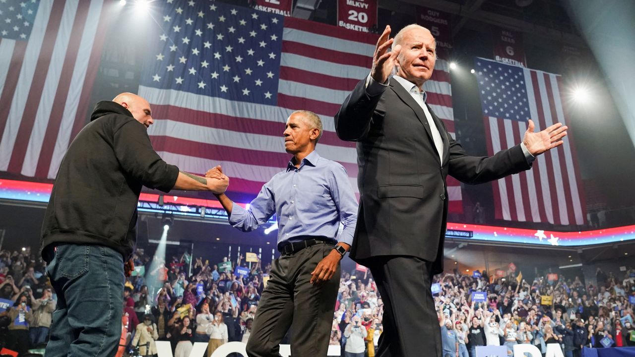 2022年11月5日,拜登、奧巴馬在賓州出席競選活動