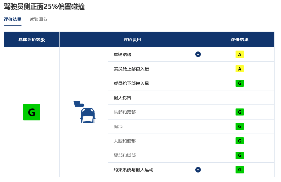 駕駛員側正面25%偏置碰撞測試各細分項目 來源:中保研