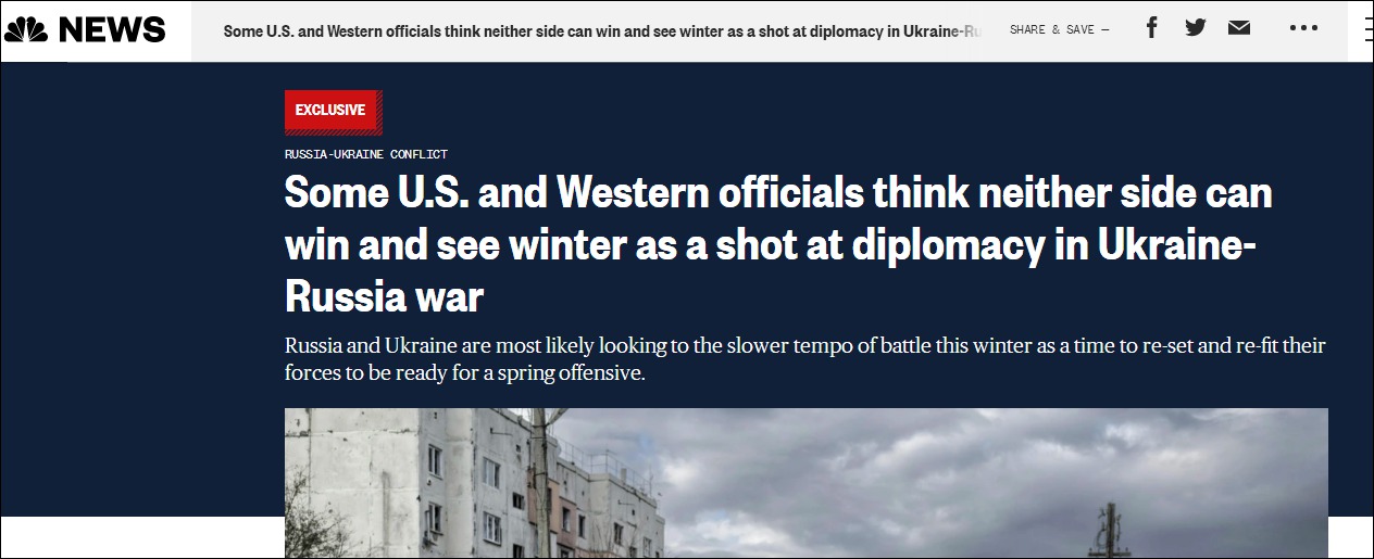 但正因如此,西方國家認為這種間歇期為用外交方式解決衝突提供了機會。一名西方官員直言:“在冬天,一切都會慢下來,我們希望能看到談判的可能性。”
