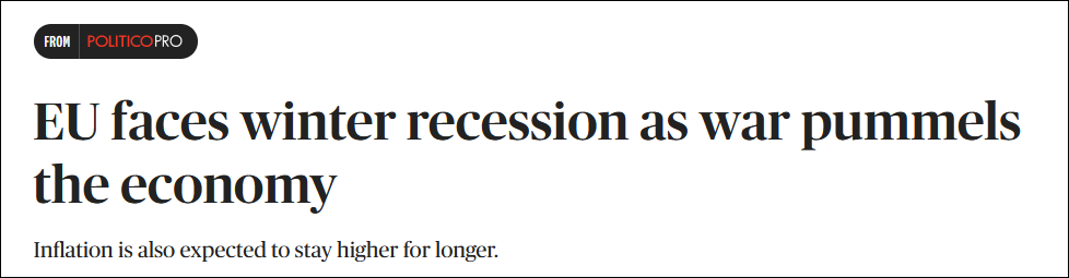 “政客”網站歐洲版:受戰爭重創,歐盟今冬將陷入衰退