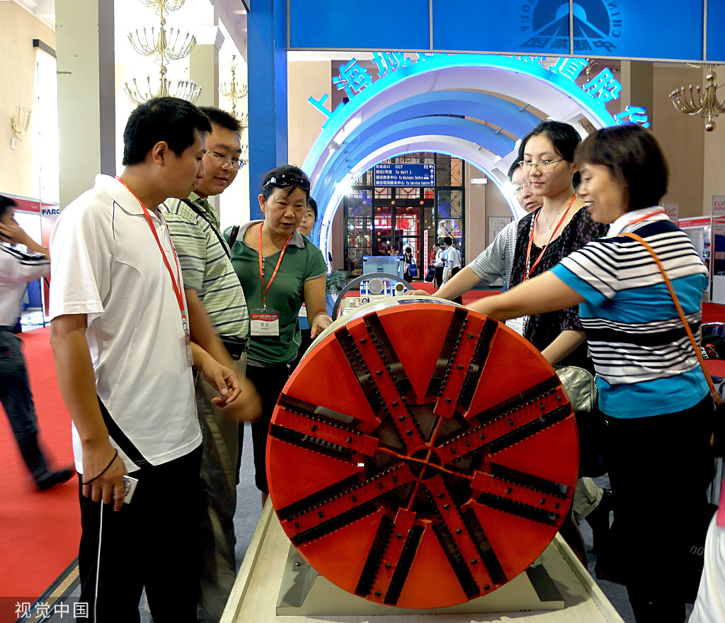 2009年8月20日,“中國中鐵一號”複合式盾構機模型亮相北京國際軌道交通技術展 圖源:視覺中國