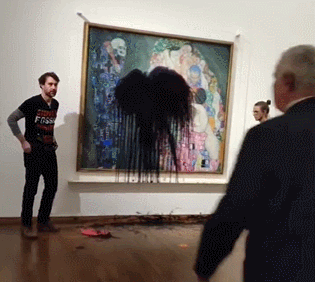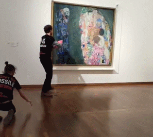 激進環保人士又對名畫下手,奧地利畫家克里姆特作品被潑黑色液體