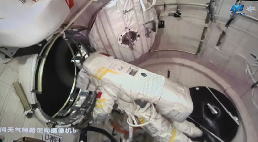 航天員出艙活動期間,首先完成了天和核心艙與問天實驗艙艙間連接裝置、天和核心艙與夢天實驗艙艙間連接裝置安裝,搭建起一座三艙間艙外行走的“天橋”,航天員蔡旭哲通過“天橋”實現了首次跨艙段艙外行走。此外,還完成了問天實驗艙全景相機A抬升和小機械臂助力手柄安裝等任務,全過程順利圓滿。這是空間站“T”字基本構型組裝完成後的首次航天員出艙活動,首次檢驗了航天員與組合機械臂協同工作的能力,進一步驗證了問天實驗艙氣閘艙和出艙活動相關支持設備的功能性能。