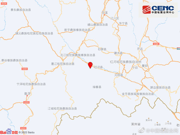 11月19日01時27分在雲南紅河州紅河縣(北緯23.37度,東經102.26度)發生5.0級地震,震源深度8千米。