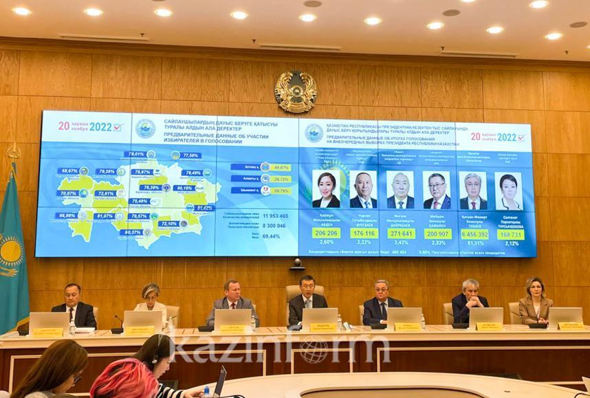 (觀察者網訊)據哈薩克國際通訊社消息,當地時間11月21日,哈薩克斯坦中央選舉委員會公佈了2022年總統選舉投票初步統計結果。結果顯示,現任總統託卡耶夫以81.31%的得票率贏得總統選舉。