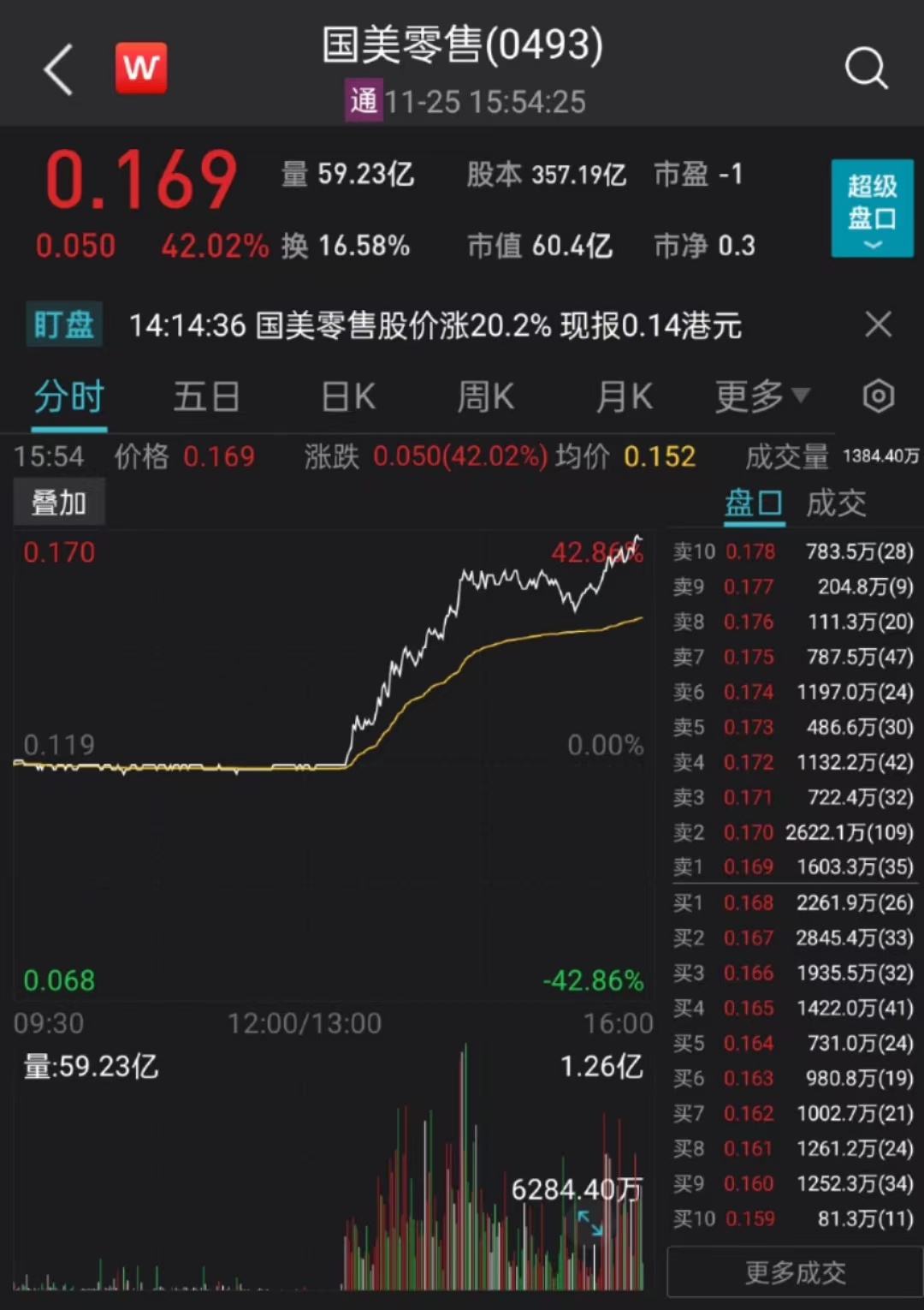國美相關股票今日(11月25日)大漲,或與其業務向直播等線上領域轉型有關。