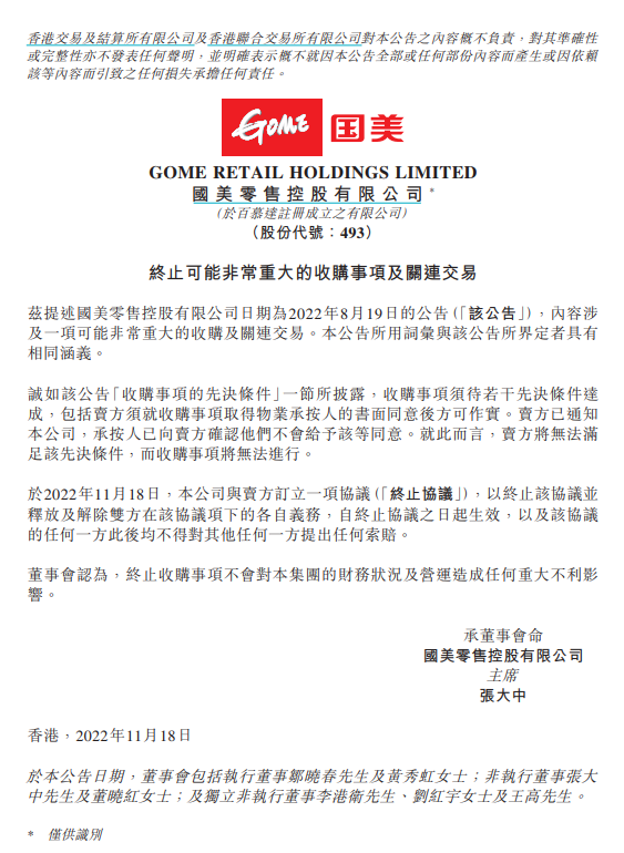 消息面上,昨日(11月24日)有報道稱,國美電器將在全國各地門店陸續啓動直播,並深化“全員推手”戰略,積極發展直播帶貨新模式。據悉,這是國美零售上週公告終止向大股東收購物業和物流資產後,國美方面謀求現有業務轉型的舉措。