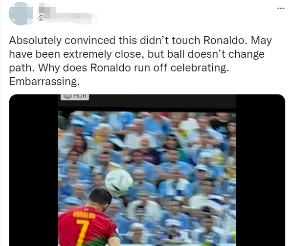 “C羅的頭髮顯然碰到了球,這個進球應該算他的。”